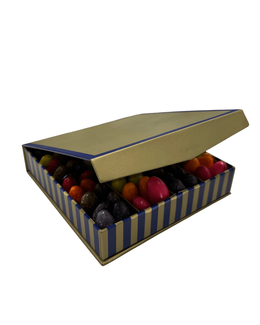 Empreint d’histoire, notre boutique vous plonge dans un décor féerique : l’escalier, les boiseries, et le lustre en cristal, qui appelle tous les clients à lever la tête, plongent les gourmands dans un univers paradisiaque. Des pots en verre, posés sur les étagères présentent des confiseries multicolores.